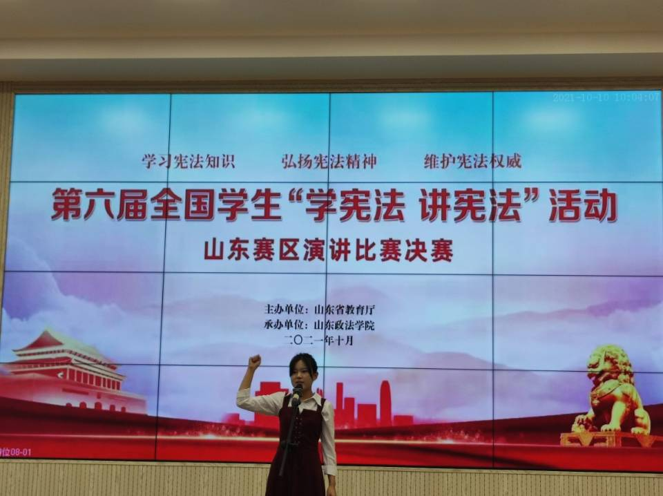 10月10日,由山东省教育厅主办的第六届全国学生“学宪法 讲宪法”活动山东赛区演讲比赛和知识竞赛分别于山东政法学院、曲阜师范大学日照校区举行,社会与法学院知识产权专业张雨晴、陈孟洁同学分别代表学校参赛。