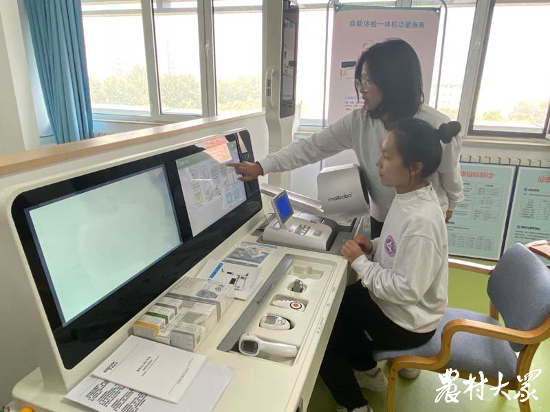 11月3日,在山东女子学院社区治理与健康养老综合实训中心,上课的学生们正在娴熟地操作着自助体检一体机、辅助下肢步行训练机等设备。还有的学生在进行其他各种养老课程的学习。在农村幸福院教室里,学生们正在进行适老化的书法、插花、布艺等训练。