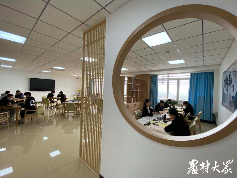 在农村幸福院教室里,学生们正在进行书法、棋类等训练。