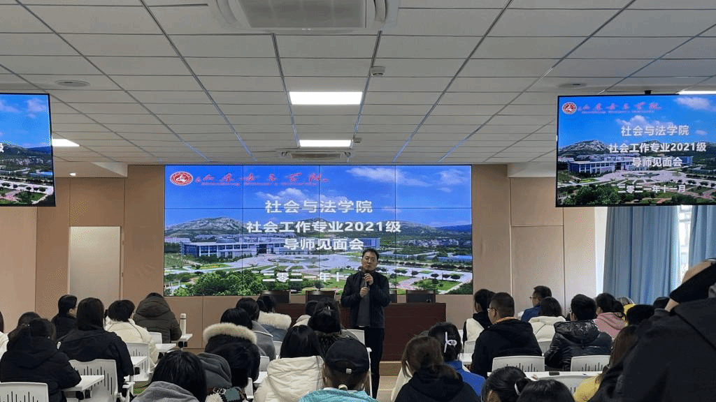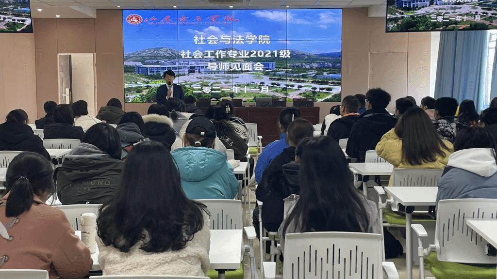 2021年11月9日下午,社会与法学院2021级社会工作专业导师见面会在学校求真楼610会议室顺利举行。社会与法学院副院长孙旭友、社会工作教研室主任赵记辉,教师代表苏海、张静敏、刘静、于丽娜、栾晓、谢培熙,以及所有2021级社会工作新生参加了见面会。