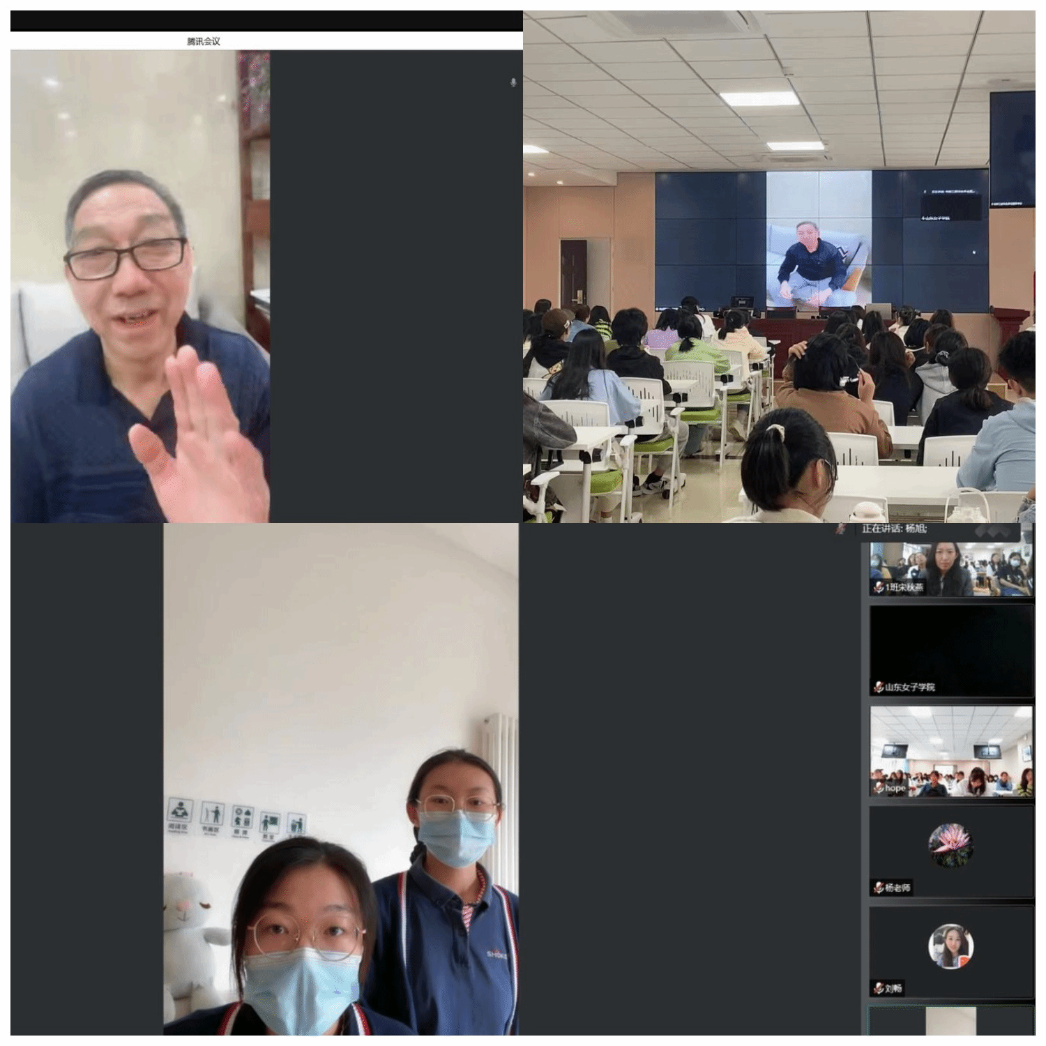 本次活动邀请了金龄健康产业投资(山东)有限公司康旅分公司、北京首开寸草养老服务有限公司和山东康桥养老服务有限公司三家养老企业参与。它们分别代表了现代养老行业中旅居康养、院舍化照顾以及医养结合三类不同的养老模式。企业及实习学生通过直播方式带领新生云游机构,直观展示现代养老模式。企业还邀请到几位退伍老兵,给学生们讲述保家卫国的经历及退休后的志愿服务,激发了学生的爱国热情。正在企业实习的2020级养老服务管理专业学生与新生分享了实习感受,讲述了感受到的老人们的积极、主动、乐观、热情,鼓励新生树立对专业的热爱,认真掌握专业知识。最后社会与法学院院长闫小红对本次活动进行了总结,鼓励新生认真学习专业知识,加强课外经验积累,真正成为养老服务管理领域专业人才。