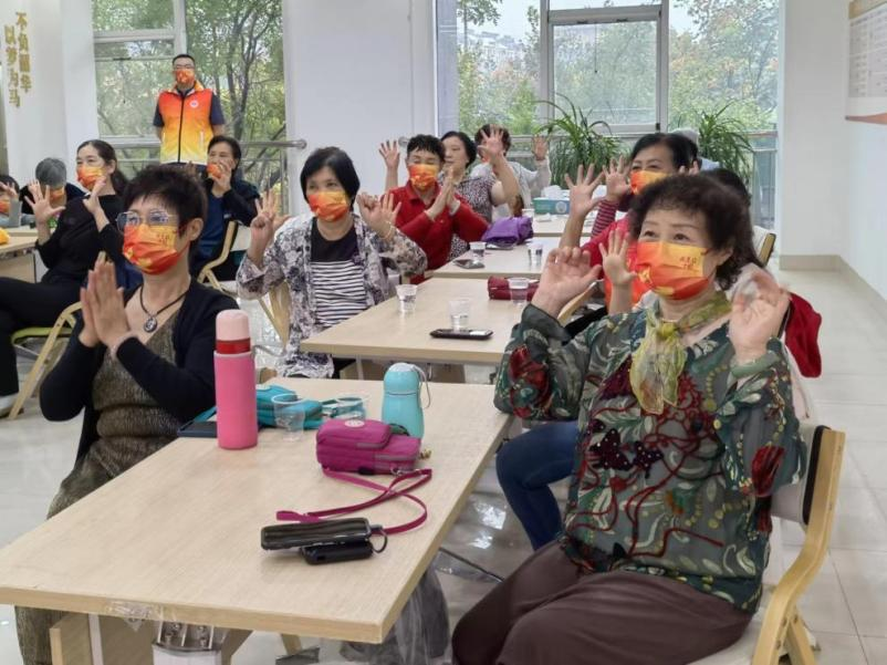 2022年10月1日早,山东女子学院社会与法学院志愿服务队在山东省济南市历城区鲁商凤凰城日间照料中心开展了名为“桑榆晚晴 ,养乐同行”志愿服务活动。在喜迎党的二十大召开,祖国母亲七十三周岁华诞和中华民族传统节日“九九重阳节”之际,培育“老吾老及以人之老”的道德风尚。本次志愿活动由祝国红,陈姝君老师领队学生们深入了解爱老助老理念。