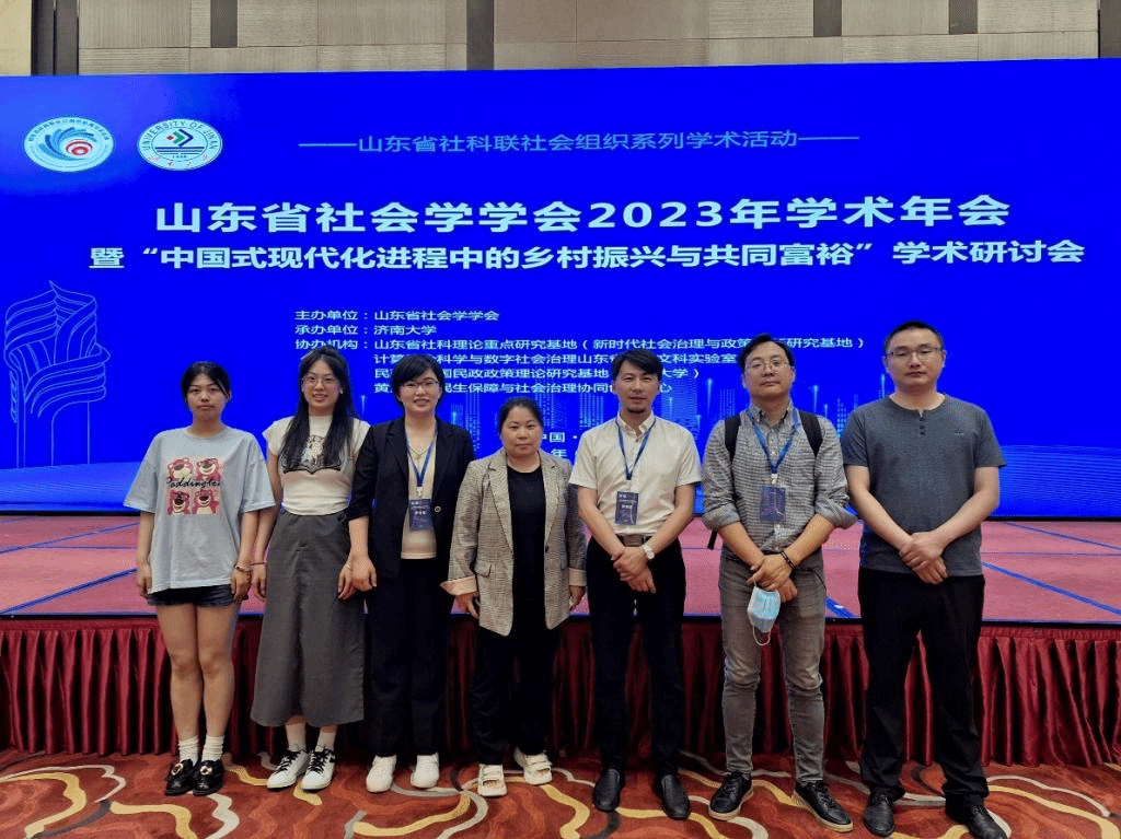 2023年6月3日,社会与法学院闫小红院长带队参加由山东省社会学学会主办,济南大学承办的山东省社会学学会2023年学术年会暨“中国式现代化进程中的乡村振兴与共同富裕”学术研讨会。来自中国社会科学院、清华大学、南开大学、山东大学、武汉大学、暨南大学、上海大学等60多所高校、院所的众多知名专家、学者参会。上午的主题报告环节,来自社会保障、社会学、人口学、政治学等领域的5位专家分享了他们的观点与成果,为与会代表提供了一场精彩纷呈的思想盛宴。下午的研讨会分四个平行论坛同时进行,主题分别为乡村振兴与共同富裕、人口发展与养老服务、社会治理与社会政策、社会工作与社会服务。