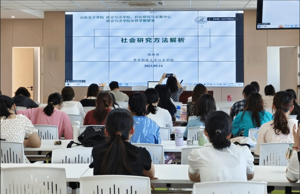 2023年9月14日山东女子学院社会与法学院邀请华中科技大学社会学院郑丹丹教授进行了题为“女性主义研究方法解析”的专题讲座。本次讲座由社会与法学院副院长孙旭友主持,并对郑教授进行专家介绍。李桂燕教授对女性学专业建设和教研室情况进行了简介。