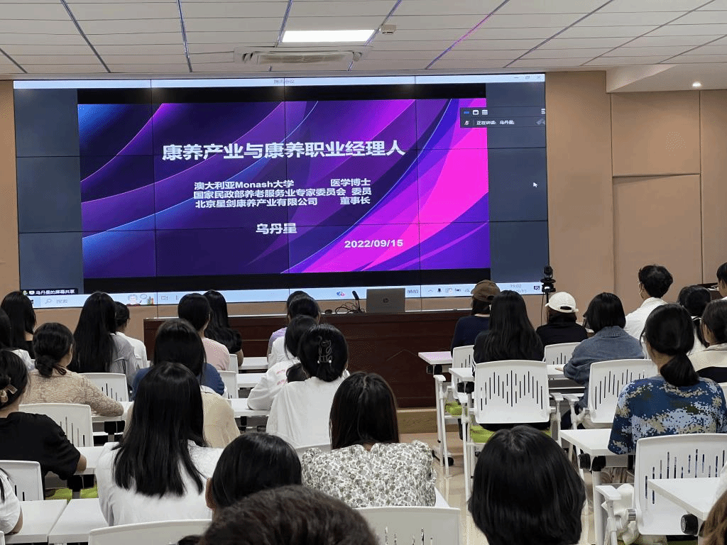 9月15日,黄河流养老服务人才培养共同体在线上开启了养老服务管理专业新生开学第一课。本次活动由山东女子学院牵头,黄河流域养老服务人才共同体企业和高校师生共计500余人参与本次活动。北京星剑康养产业有限公司董事长、中国疾控中心老年期重点疾病预防与干预国家项目专家组成员、中国老年学和老年医学学会常务理事、“老龄智库”专家乌丹星应邀出席活动,并做了《康养产业与康养职业经理人》专题讲座。山东女子学院社会与法学院院长闫小红主持活动。