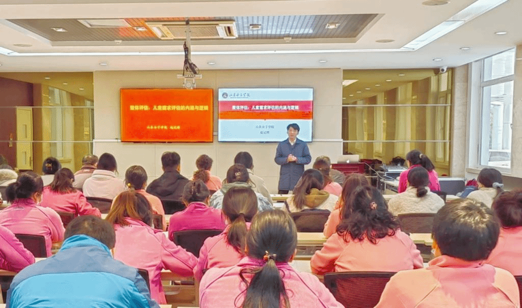 接着,赵记辉老师结合学生的实习情况以及济南市儿童福利院的工作实际,以“整体评估:儿童需求评估的内涵与逻辑”为主题,为院内全体职工及实习生开展了社会工作专业知识培训,探讨如何从生理、心理、社会等方面整体评估儿童需求,更好地为孩子们提供综合、全面、高质量的系统性服务。