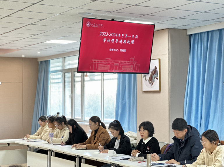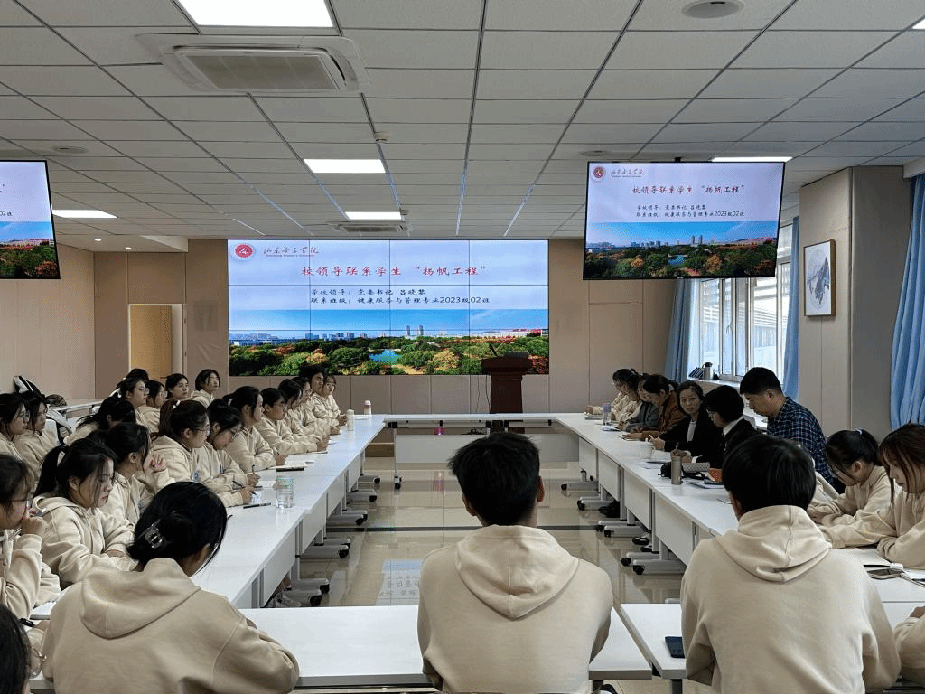2023年11月23日,山东女子学院校领导联系学生“扬帆工程”暨校领导讲思政课在求真楼610举行,党委书记吕晓黎与健康服务与管理2302班全体学生交流座谈,宣传部部长王鲁、社会与法学院教师代表参会。