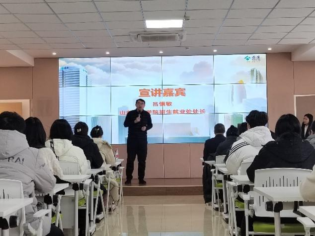 为进一步加强校企合作,实现企业和人才的积极互动,扎实推进社会与法学院2024届毕业生就业工作。12月26日,由山东女子学院社会与法学院主办,泰康之家儒园、琴园承办的企业招聘宣讲会在求真楼健康养老产业学院顺利举行。本次宣讲会由泰康之家儒园人力资源主管栾瑶主持,特邀山东女子学院招生就业处处长吕慎敏、泰康之家儒园筹备组副组长兼营销总监陈科出席会议并致辞。莅临会议的有社会与法学院党委书记杨洋、养老服务管理教研室主任陈姝君,泰康之家琴园人力资源主管秦小倩、泰康之家儒园超体经营主管杜浩冉,社会与法学院2024届养老服务管理、健康养老服务与管理、社会工作专业毕业生。