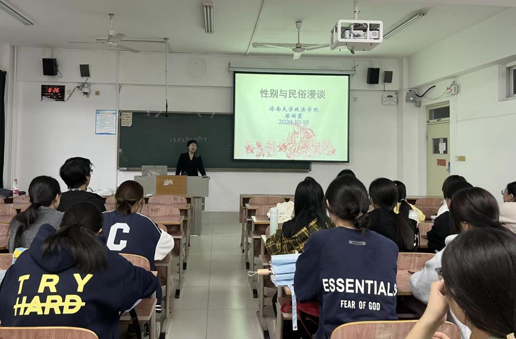 2024年10月28日上午,济南大学梁丽霞教授来到山东女子学院,为女性学专业讲解关于性别与民俗的专题内容。讲座前,女性学专业负责人李桂燕教授介绍了女性学专业近三年的招生和专业开展情况。