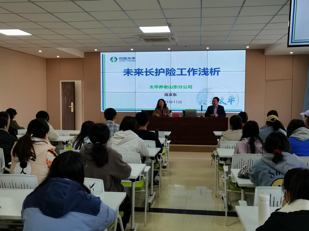 11月18日下午,社会与法学院学院举办“弘毅讲坛”系列讲座,邀请太平养老山东分公司高级经理高文东作题为《未来长护险工作浅析》的学术讲座。报告会由社会与法学院院长闫小红主持,健康服务与管理、社会工作、养老服务管理专业的师生聆听报告。