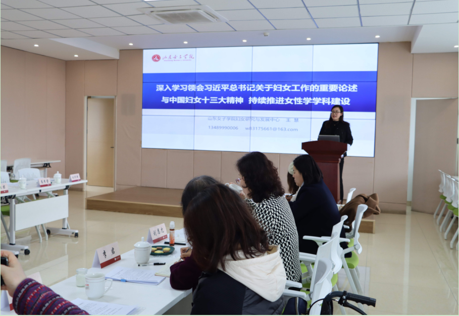 会上,学校妇女研究与发展中心主任王慧教授应邀作《深入学习领会习近平同全国妇联新一届领导班子集体谈话时的重要讲话和中国妇女十三大精神,持续推进女性学学科建设》专题辅导,详细解读了习近平总书记重要讲话中对妇联组织的明确要求和对广大妇女的殷切希望,分析了女性学学科建设的总体思路、发展路径、重点任务。女性学教研室主任李桂燕简要介绍了女性学专业的建设情况,学生代表分享了学习收获和成长体会。