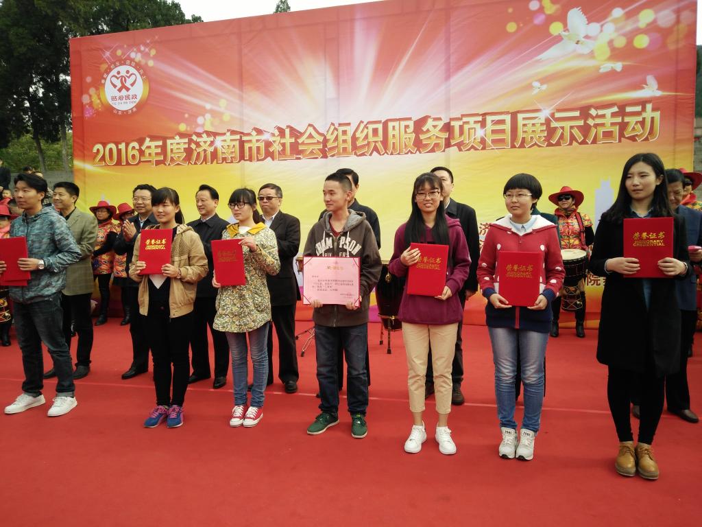 10月28日,我院14级社会工作本科专业的五名同学参加了由济南市民政局主办,济南市社会组织总会、济南市社会组织服务中心承办的2016年度济南市社会组织服务项目展示活动暨“行公益,我助力”大学生公益项目创新大赛颁奖仪式,我院多位同学在此次公益项目创新大赛中取得优秀成绩。