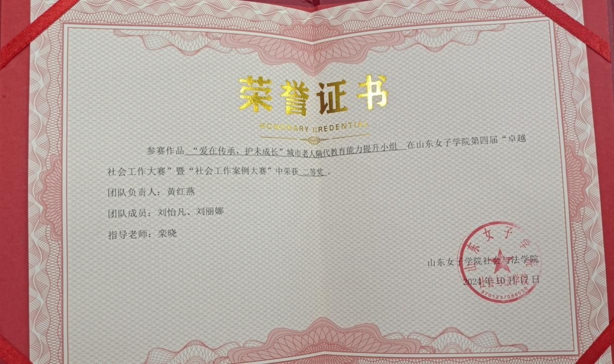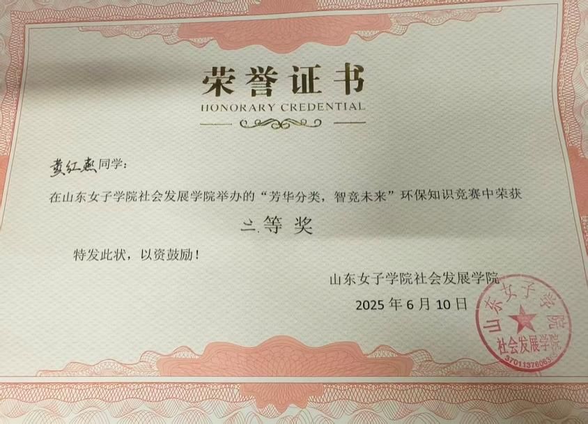 她坚信“实践出真知”,积极参与各类学科竞赛与综合素质比拼,在竞赛中查漏补缺、提升自我。专业领域,她凭借对社会工作案例的深入分析和精准把握,荣获山东省第六届社会工作案例大赛三等奖、山东女子学院第四届“卓越社会工作大赛”暨“社会工作案例大赛”二等奖;语言与知识类竞赛中,她展现出多元的知识储备,拿下校级英语配音大赛三等奖、大学生党史知识竞赛校赛二等奖、高校大学生诗词竞答大赛初赛三等奖等荣誉;主题类竞赛中,她积极响应各类号召,斩获“芳华分类,智竞未来”环保知识竞赛三等奖、“诚信立身”主题知识竞赛三等奖、第六届大学生环保知识竞赛优秀奖,在以赛促学中实现综合能力的全面提升。