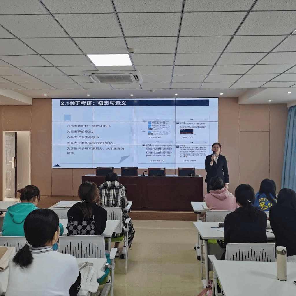 任晓迪围绕个人学习经验和考研经历分享了从本科到研究生的成长与转变,同时从如何择校选专业、如何准备研究生各阶段考试、如何安排学习时间等方面,对2021级新生提出许多诚恳的建议。在分享中,任晓迪结合她自身的成长和工作经历,激励广大新生明确目标,力争上游。分享交流后,在场的同学积极向学姐请教自己在学习和生活中遇到的问题,任晓迪结合实际进行了详细解答、交流,为大家指点迷津。